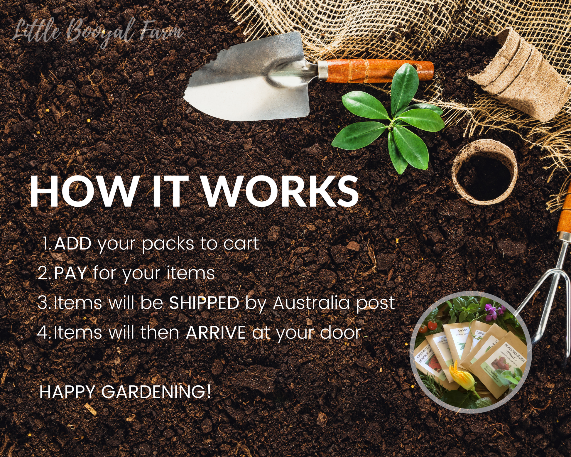 Pop your seeds or goodies in the cart, check out, and we’ll send them on a little Australia Post adventure straight to your door.